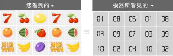 獎勵:依照賠率表上各圖案的 2 連線、3 連線、4 連線或 5 連線…等規則所給與的獎勵,賠率越高的圖案越精美華麗,賠率越低的圖案越簡單不起眼。