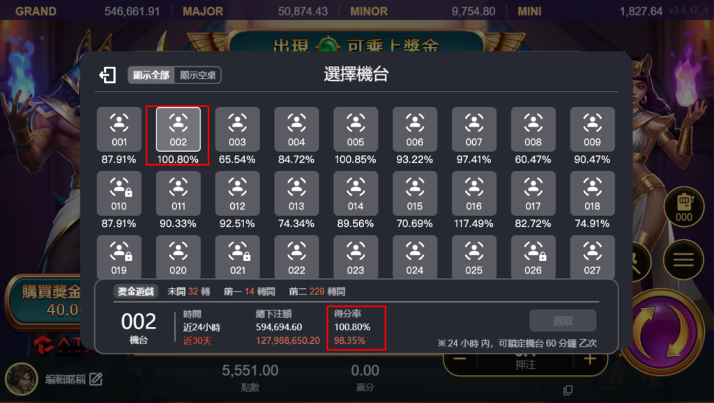 玩家最不想遇到的時期,不管在戰神賽特遊戲調整注碼多少金額都無法贏得分數,這時就可以考慮換個機台,換好機台最好是選擇得分率較低的機台,更容易獲得大獎。