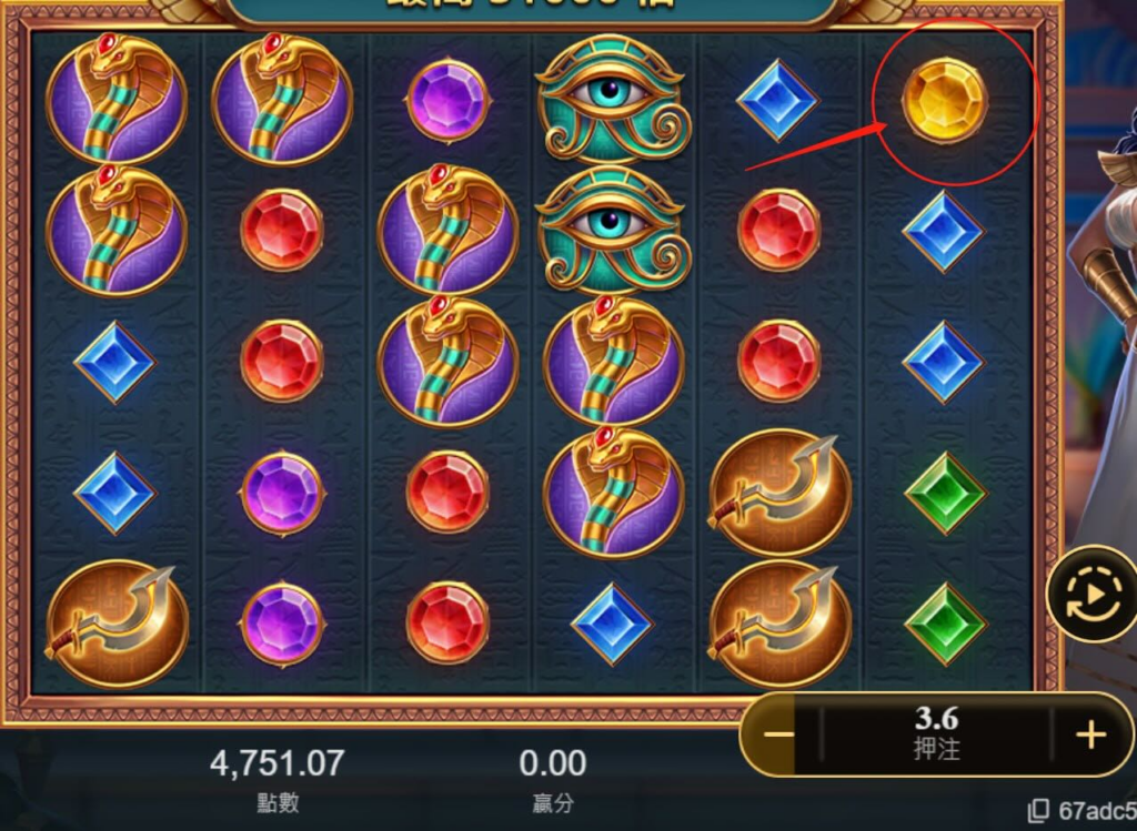 戰神賽特中眼睛的符號是錢最多的,但是遊戲中必須有八個相同符號才行,當玩家遇到七個眼睛時就是訊號來臨,玩家可以觀察一下遊戲中有沒有出現寶石符號,而且必須是黃色的,實測下來都中超過1000多倍。