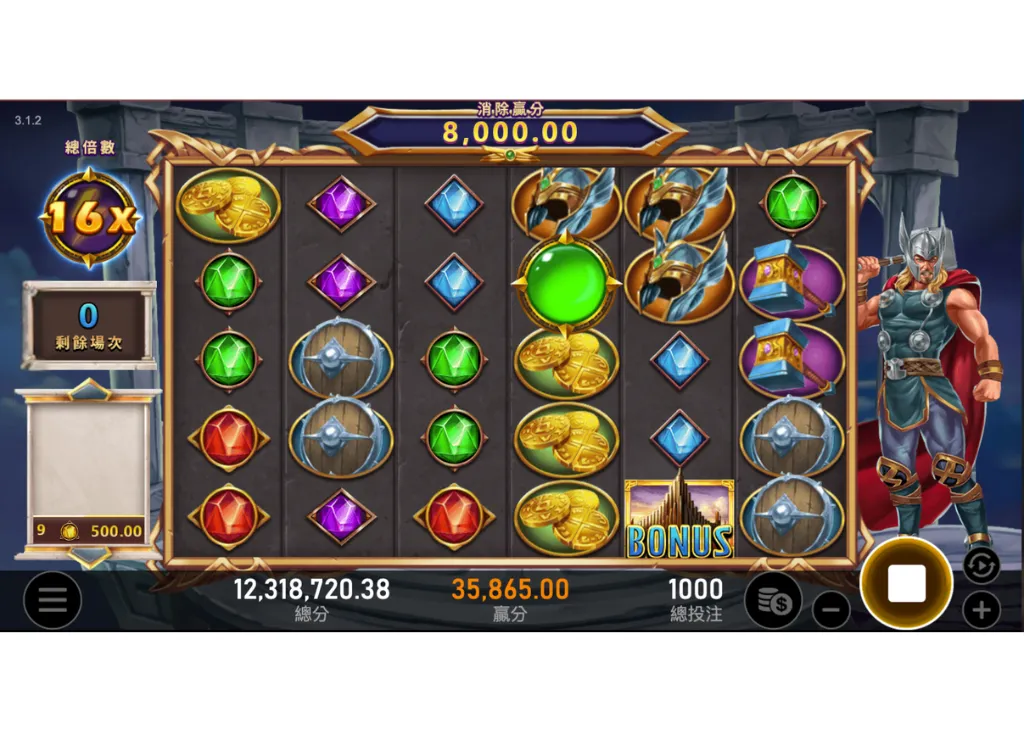 當雷神鎚子圖示出現時,玩家將觸發一個獨特的功能,此功能會隨機選擇一個符號並將其轉化為野生符號,增加獲勝機會,另外,在某些情況下,雷神鎚子會引發「閃電免費旋轉」模式,玩家將有機會免費旋轉數輪,並且在這些輪次中獲得額外的獎金。